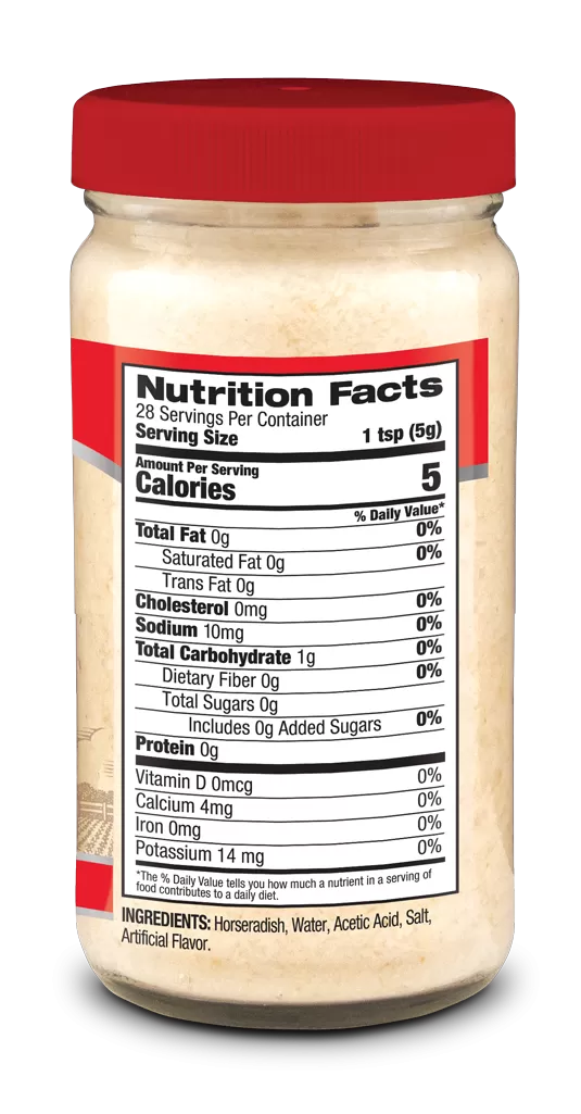 Horseradish, Water, Acetic Acid, Salt, Artificial Flavor.