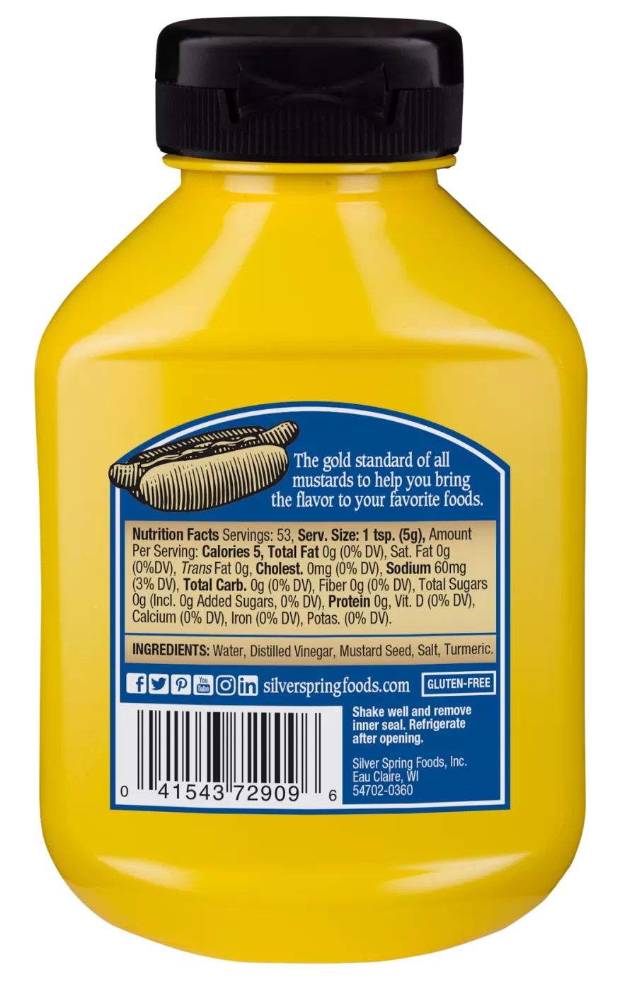 New to the Silver Spring Mustard lineup is the Gold Standard of all Mustards. This tangy mustard gives your Hot Dogs, Brats & Burgers just the right touch of flavor. Give it Zing with Silver Spring! Gluten-Free product from Silver Spring.