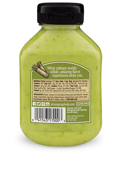 Sushi is just the beginning for the fiery blast of hot wasabi. Spread this creamy version of classic wasabi on everything from baked fish to roast beef sandwiches for an added spark of heat and flavor. Gluten-Free product from Silver Spring.